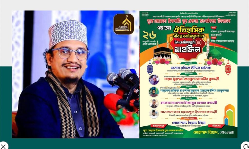আগামীকাল ২৬ জানুয়ারি (সোমবার) বাদে যোহর থেকে শুরু হয়ে মধ্যরাত পর্যন্ত এই মাহফিল চলবে।
