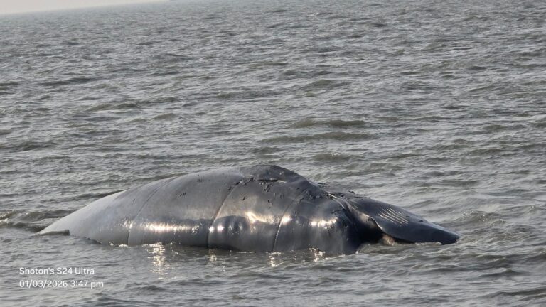 কক্সবাজারের কুতুবদিয়া উপজেলার উত্তর ধুরুং ইউনিয়নের মিয়ার কাটা এলাকায় সমুদ্রের তীরে একটি বিশাল আকারের মৃত তিমি ভেসে এসেছে।