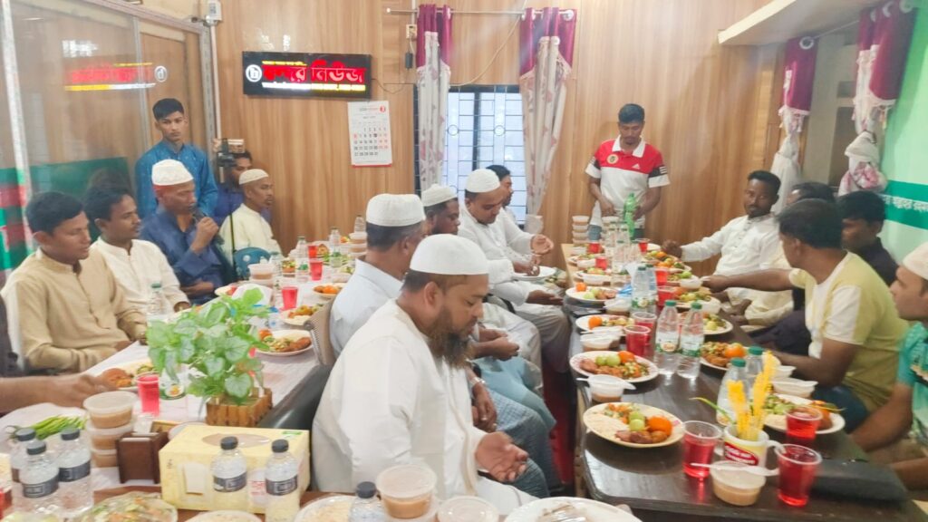 ইফতারের আগে দেশ, জাতি ও মুসলিম উম্মাহর কল্যাণ কামনা করে বিশেষ দোয়া ও মোনাজাত পরিচালনা করেন হাফেজ আমজাদ হোসেন। পরে উপস্থিত সবার মাঝে ইফতার পরিবেশন করা হয়। অনুষ্ঠানে স্থানীয় বিপুল সংখ্যক মানুষ অংশ নেন।