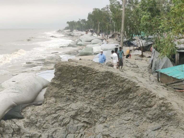 সরেজমিনে দেখা যায়, ভাঙা বেড়িবাঁধের পাশে বসানো জিও টিউবের কোনো চিহ্ন নেই। জোয়ারের সময় ঢেউয়ের সঙ্গে সাগরের পানি ভাঙা অংশ উপচে পাশের ফসলি জমিতে ঢুকে পড়ছে। এতে করে কৃষি জমি ও বসতভিটা মারাত্মক ঝুঁকির মুখে পড়েছে।